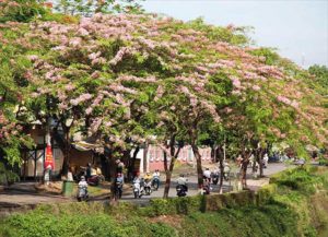Muồng hoa đào hay còn gọi là hoa Bò cạp hồng, có tên tiếng Anh là Cassia javanica. Hoa có màu hồng phớt và đậm dần với màu tím, đỏ. Loài này có nguồn gốc từ rừng tự nhiên khu vực Đông Nam Á. Ở Việt Nam, cây phổ biến rộng rãi ở các tỉnh Tây Nguyên như Gia Lai, Kon Tum, Đắc Lắc và các tỉnh miền Đông Nam Bộ như Tây Ninh, Đồng Nai. Ở Hà Nội hiếm gặp loại hoa này. Ta có thể bắt gặp muồng hoa đào nở rực góc phố Lý Thường Kiệt vào mùa hè.