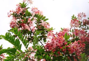 Đặc điểm hình thái: Cây gỗ cao 10 – 20m, đường kính 60cm, tán lá tròn, rộng, đôi khi tán tự do . Lá Kép Lông Chim chẵn, cuống chung dài 10 – 15cm hay hơn, có lông; lá nhỏ 6 – 10 đôi, hình bầu dục, dài 5 – 6cm, rộng 2,5cm. Mùa hoa tháng 4 đến tháng 6 Cụm hoa ngù ở nách lá, dài 15cm hay hơn. Hoa nở màu hồng tươi như hoa đào Quả hình trụ hơi có đốt, dài 35cm hay hơn, rộng 15 – 20mm, mang rất nhiều hạt trái xoan rộng.